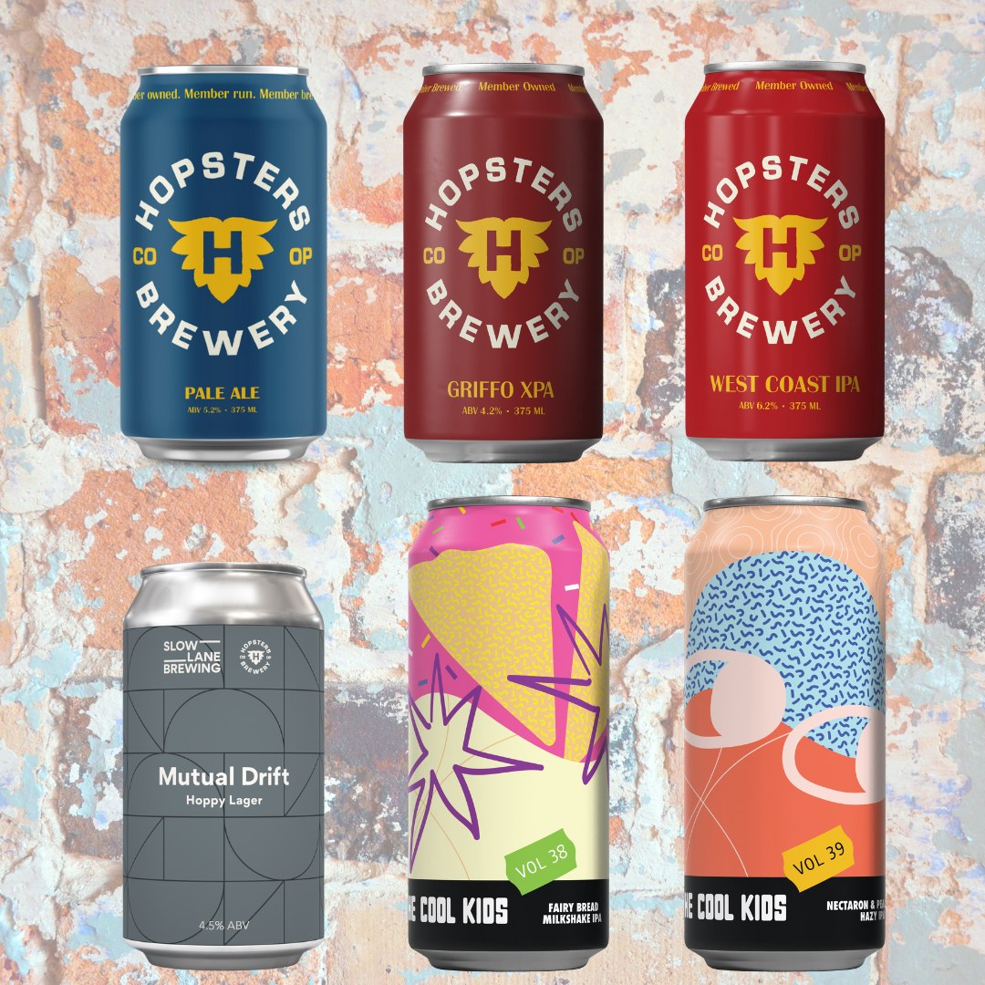 Make your own case of 16 Hopsters beers selecting any combination of the 4 packs below: